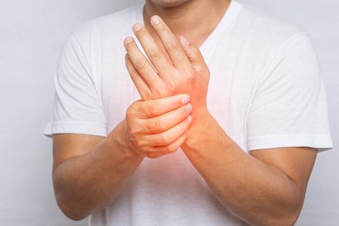 3. Отечность кистей рук и запястий, часто обоих одновременно из-за симметричности развития.